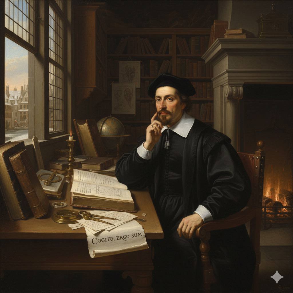 René Descartes, nacido en Francia en 1596, es ampliamente reconocido como el «padre de la filosofía moderna» y un polímata que dejó una huella indeleble en la filosofía, las matemáticas y la ciencia. Perteneciente a una familia de la nobleza de toga, su educación en el Collège Henri IV de La Flèche, una escuela jesuita, le proporcionó una sólida base en filosofía y matemáticas. Desde una edad temprana, su delicada salud le concedió el privilegio de la introspección, ganándose de su padre el apodo de «pequeño filósofo» por su constante curiosidad. Su vida fue un viaje en busca de la verdad y la certeza, que lo llevó a rechazar la escolástica tradicional en favor de un nuevo método basado en la razón.